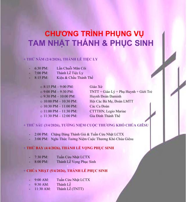 Thứ Bảy: - Thánh lễ 10:00 AM