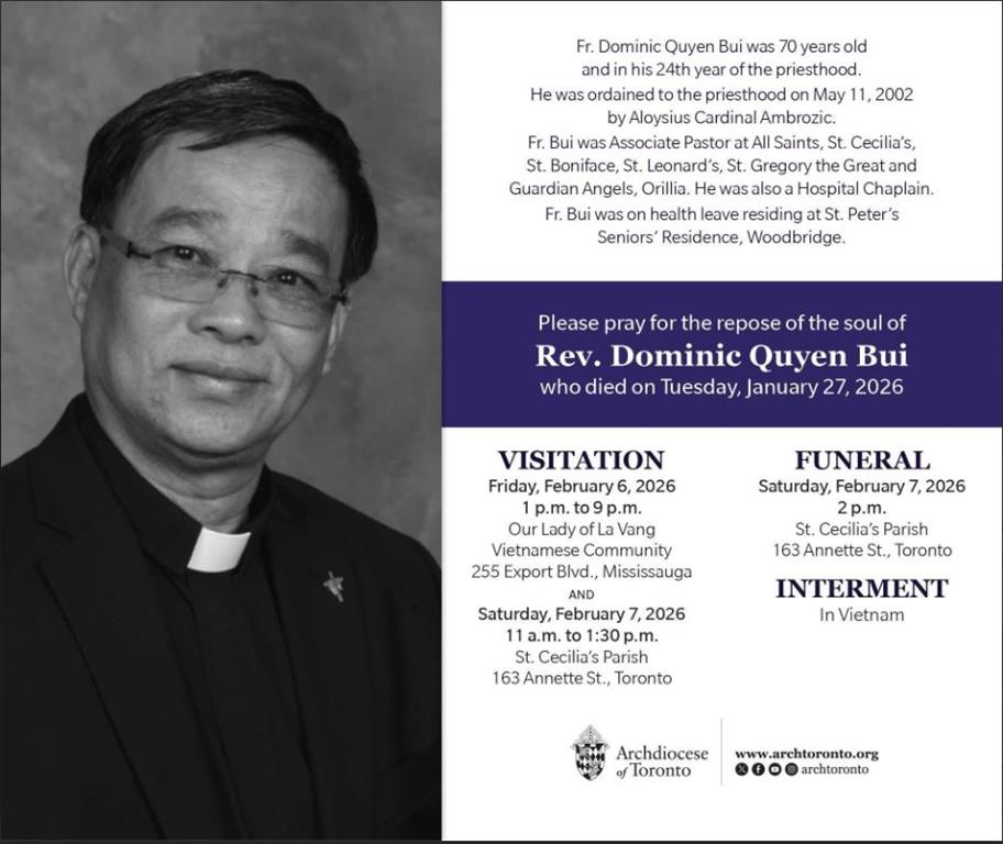 Vui lòng liên hệ Cha xứ hoặc ông Kim: (613) 723-7083
